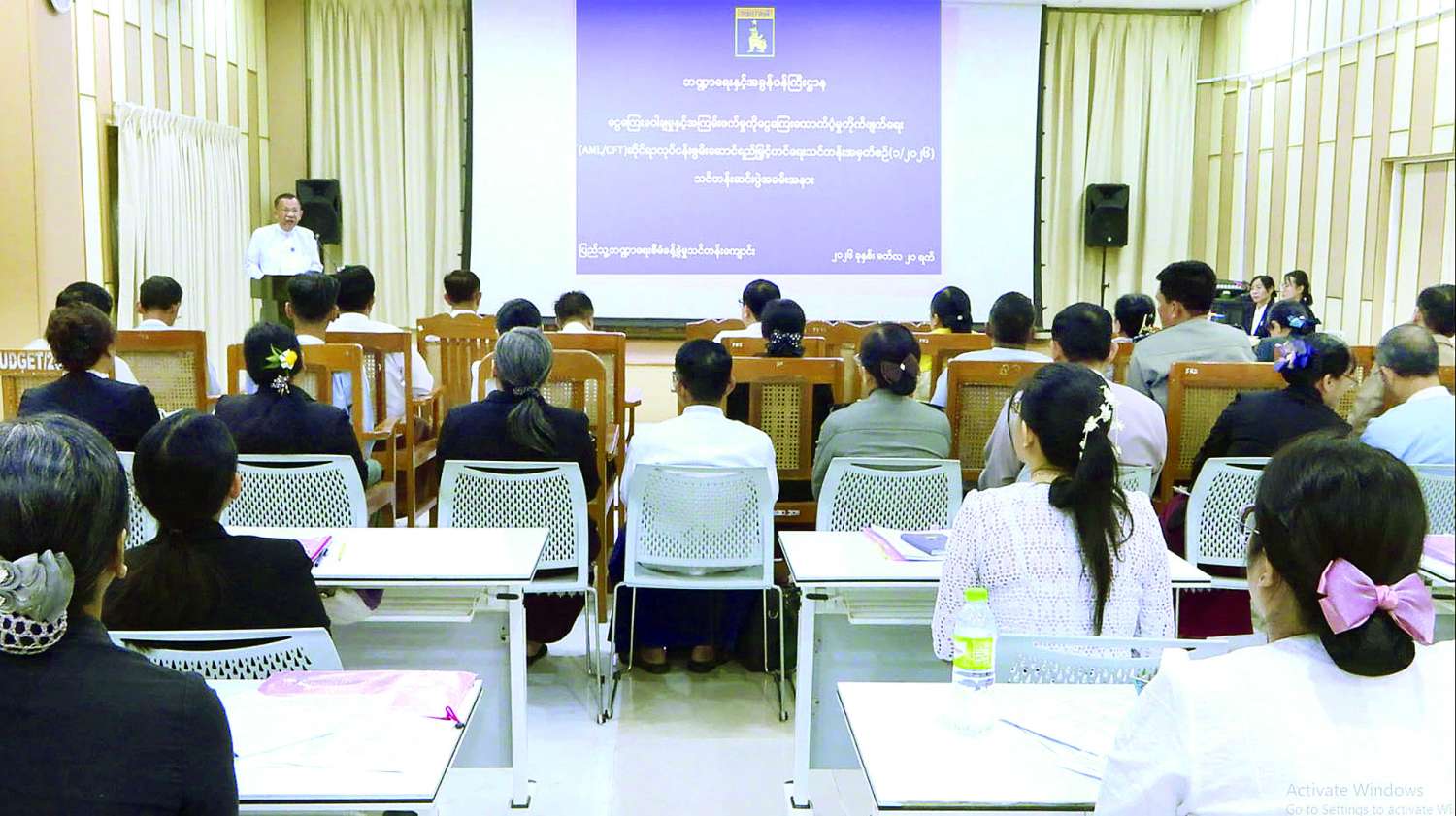 ဘဏ္ဍာရေးနှင့်အခွန်ဝန်ကြီးဌာနကကြီးမှူးဖွင့်လှစ်သည့် ငွေကြေးခဝါချမှုနှင့် အကြမ်းဖက်မှုကို ငွေကြေးထောက်ပံ့မှုတိုက်ဖျက်ရေး (Anti-Money Laundering and Countering the Financing of Terrorism-AML/CFT) ဆိုင်ရာ လုပ်ငန်းစွမ်းဆောင် ရည်မြှင့်တင်ရေးသင်တန်း အမှတ်စဉ် (၁/၂၀၂၆) သင်တန်းဆင်းပွဲကို ယနေ့နံနက်ပိုင်းတွင် နေပြည် တော် ပြည်သူ့ဘဏ္ဍာရေးစီမံခန့်ခွဲမှု သင်တန်းကျောင်း၌ကျင်းပရာ ဘဏ္ဍာရေးနှင့်အခွန်ဝန်ကြီးဌာန ပြည်ထောင်စုဝန်ကြီး ဒေါက်တာကံဇော်၊ ဒုတိယဝန်ကြီး ဒေါ်သန်းသန်းလင်း၊ ဌာနဆိုင်ရာတာဝန်ရှိသူများ၊ ဖိတ်ကြားထားသော ဧည့်သည်များ၊ သင်တန်း နည်းပြများနှင့် သင်တန်းသား သင်တန်းသူများ တက်ရောက်ကြသည်။