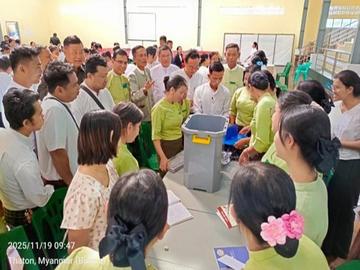 ၂၀၂၅ ခုနှစ်၊ နိုဝင်ဘာ ၁၉ ရက် နံနက် ၉ နာရီ ၃၀ မိနစ်တွင် မွန်ပြည်နယ်၊ သထုံမြို့နယ်၊ အမှတ်(၁)အခြေခံပညာအထက်တန်းကျောင်း၌ မြန်မာအီလက်ထရောနစ် မဲပေးစက် (MEVM) ဆိုင်ရာ နည်းပညာအထောက်အကူပြု သင်တန်းဖွင့်ပွဲအခမ်းအနား .................................