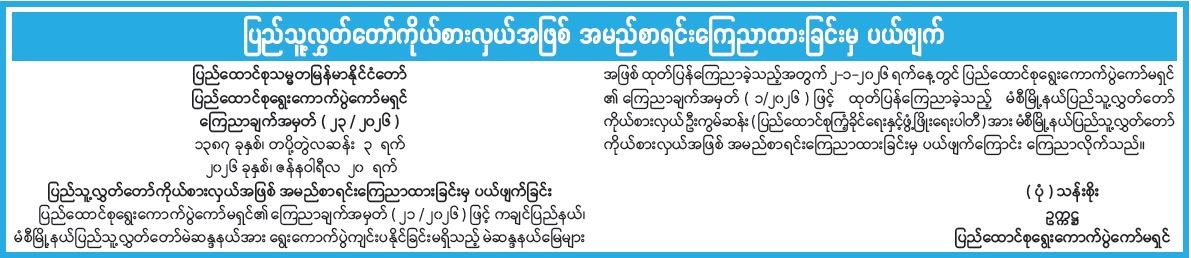 ရွေးကောက်ပွဲများ ကျင်းပနိုင်ခြင်းမရှိသည့် နယ်မြေများစာရင်း ထုတ်ပြန်ကြေညာ