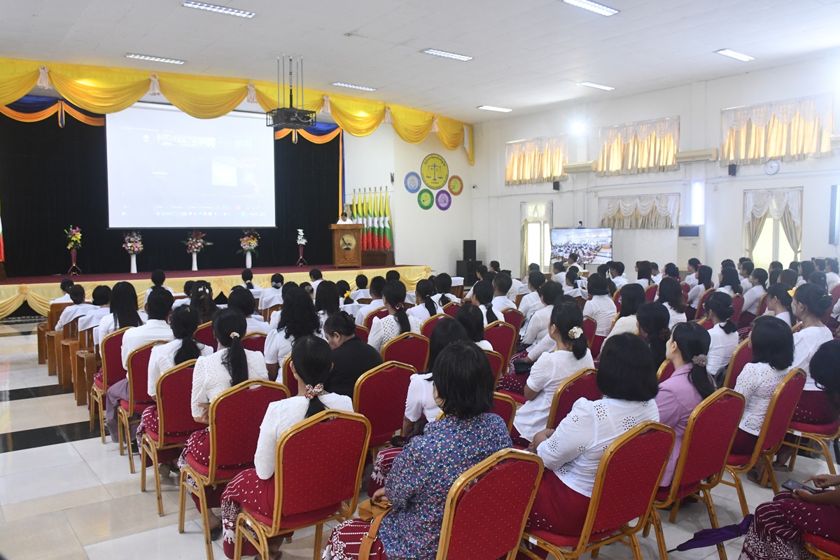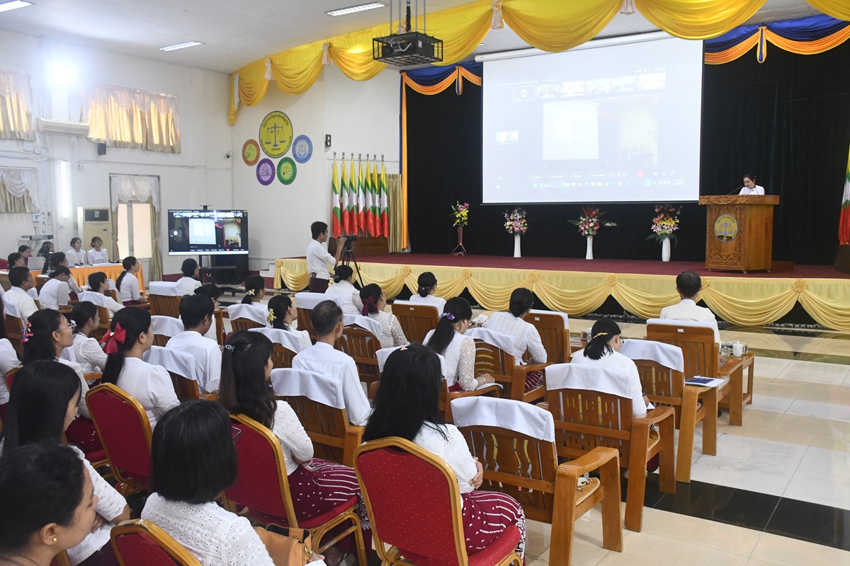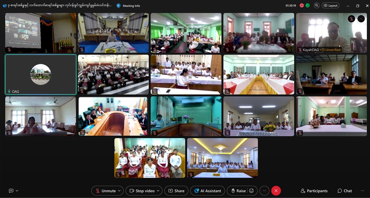 ပြည်ထောင်စုစာရင်းစစ်ချုပ်ရုံး၊ အဆင့်မြင့်စာရင်းကိုင်နှင့်စာရင်းစစ်သင်တန်းကျောင်း၊ နေပြည်တော်နှင့် တိုင်းဒေသကြီး/ပြည်နယ်စာရင်းစစ်ချုပ်ရုံးများတွင် ဖွင့်လှစ်သည့် ဒု- စာရင်း စစ်မှူးနှင့် လက်ထောက်စာရင်းစစ်မှူးများ လုပ်ငန်းခွင်ကျွမ်းကျင်မှုမွမ်းမံသင်တန်း အမှတ်စဉ် ( ၂ ) သင်တန်းဖွင့်ပွဲအခမ်းအနားကို ၂၀၂၅ ခုနှစ်၊ နိုဝင်ဘာလ ၁၀ ရက်နေ့ နံနက် ၁၀ : ၀၀ နာရီတွင် ပြည်ထောင်စုစာရင်းစစ်ချုပ်ရုံး၊ နဝရတ်ခန်းမ၌ Hybrid စနစ်ဖြင့် ကျင်းပခဲ့သည်။