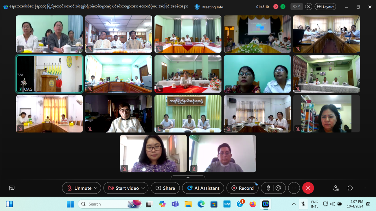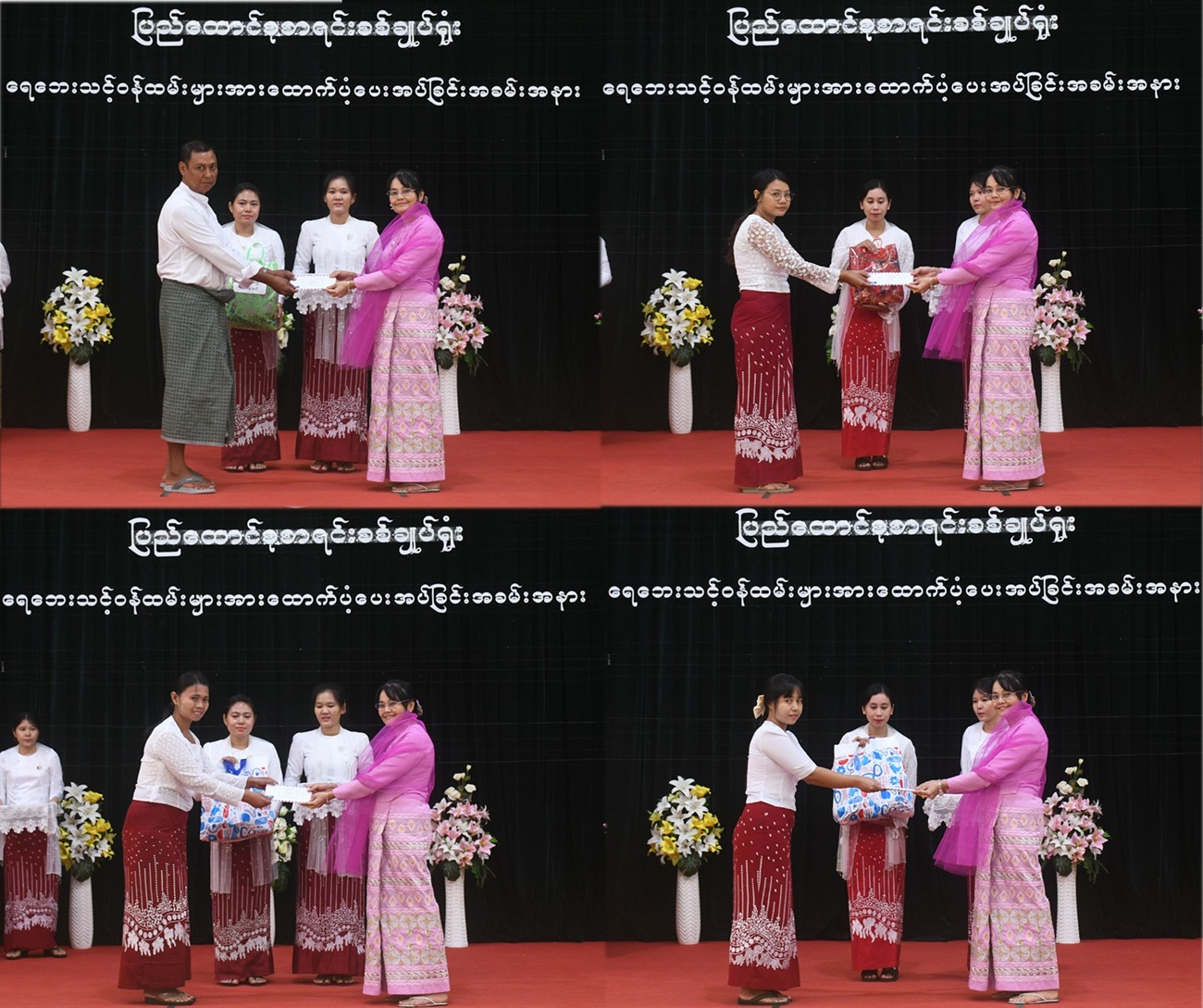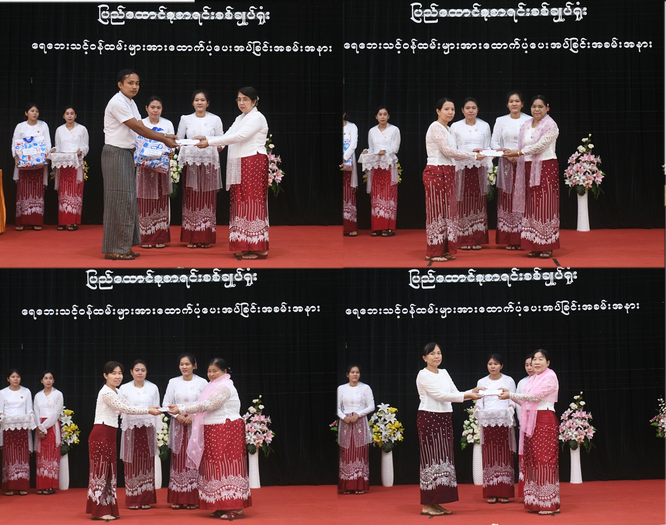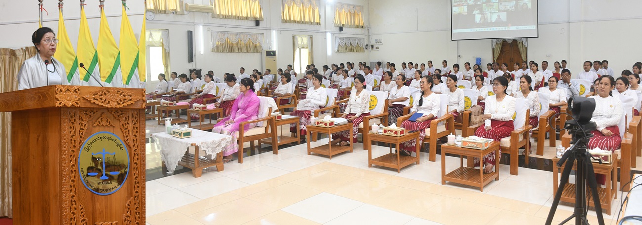 ပြည်ထောင်စုစာရင်းစစ်ချုပ်ရုံးနှင့် ဒေသစာရင်းစစ်ရုံးအသီးသီးမှ ရေဘေးသင့်ဝန်ထမ်းများနှင့် အငြိမ်းစားဝန်ထမ်းများကို ထောက်ပံ့ပေးအပ်ခြင်းအခမ်းအနားကို ၄-၁၀-၂၀၂၄ ရက်နေ့ မွန်းလွဲ ၂:၀၀ နာရီ တွင် ပြည်ထောင်စုစာရင်းစစ်ချုပ်ရုံး နဝရတ်ခန်းမ၌ ကျင်းပခဲ့သည်။