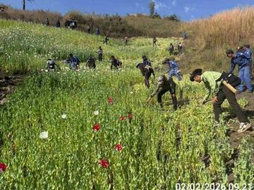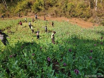 ၂၀၂၆ ခုနှစ်၊ ဖေဖော်ဝါရီ ၂ ရက်က ရှမ်းပြည်နယ်အတွင်းရှိ မြို့နယ်အချို့၌ စုစုပေါင်း ဘိန်းစိုက်ခင်း ၃၂၈ ဧကခန့်အား ဖျက်ဆီးခဲ့ကြောင်း သိရသည်။