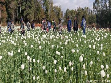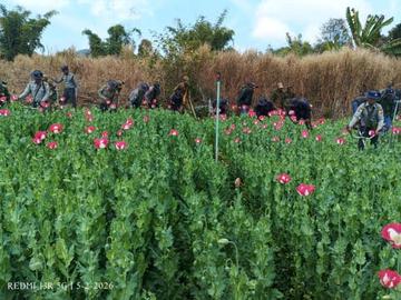 ၂၀၂၆ ခုနှစ်၊ ဖေဖော်ဝါရီ ၅ ရက်က ရှမ်းပြည်နယ်အတွင်းရှိ မြို့နယ်အချို့၌ စုစုပေါင်း ဘိန်းစိုက်ခင်း ၃၃၀ ဧကခန့်အား ဖျက်ဆီးခဲ့ကြောင်း သိရသည်။