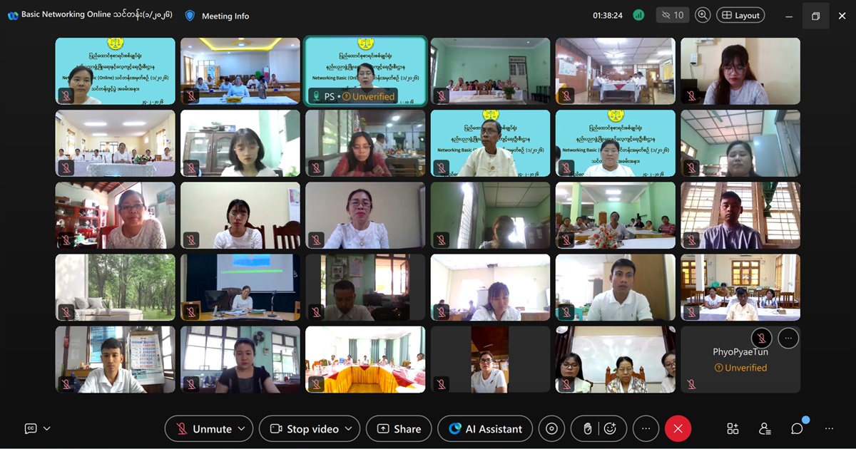 ပြည်ထောင်စုစာရင်းစစ်ချုပ်ရုံး၊ နည်းပညာဖွံ့ဖြိုးရေးနှင့်လေ့ကျင့်ရေးဦးစီးဌာန၊ လေ့ကျင့်ရေးဌာနခွဲ(နည်းပညာ)မှ ကြီးမှူးဖွင့်လှစ်သည့် Networking Basic (Online) သင်တန်းအမှတ်စဉ် (၁/၂၀၂၆) သင်တန်းဖွင့်ပွဲအခမ်းအနားကို ၂၀၂၆ ခုနှစ်၊ ဖေဖော်ဝါရီလ ၂၄ ရက်နေ့ မွန်းလွဲ ၁:၀၀ နာရီတွင် နေပြည်တော်ရှိ ပြည်ထောင်စုစာရင်းစစ်ချုပ်ရုံး၊ ပုလဲခန်းမ၌ Hybrid စနစ်ဖြင့် ကျင်းပခဲ့သည်။