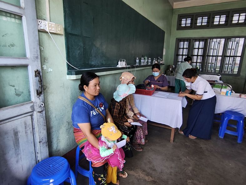 ရှမ်းပြည်နယ်(မြောက်ပိုင်း)၊ ကျောက်မဲမြို့၌ ဒေသခံပြည်သူများ၏ ကျန်းမာရေးစောင့်ရှောက်မှုလုပ်ငန်းများအတွက် ကျန်းမာရေးဝန်ကြီးဌာနနှင့် တပ်မတော်မှ ဆရာဝန်များ၊ သူနာပြုများ ပူးပေါင်း၍ ကျောက်မဲမြို့ လာဘမုနိတရုတ်ဘုံကျောင်း၌ ယာယီဆေးရုံဖွင့်လှစ်ကာ ဆေးကုသပေးခြင်းများကို ဆောင်ရွက်ပေးလျက်ရှိရာ ယနေ့တွင် ပြင်ပလူနာ ၁၀၄ ဦးနှင့် ဆေးရုံတက်ရောက်ကုသရန်လိုအပ်သော လူနာ ၇ ဦးတို့ကို လိုအပ်သည့် ကျန်းမာရေး စောင့်ရှောက်မှုလုပ်ငန်းများ ဆောင်ရွက်ပေးသည်။